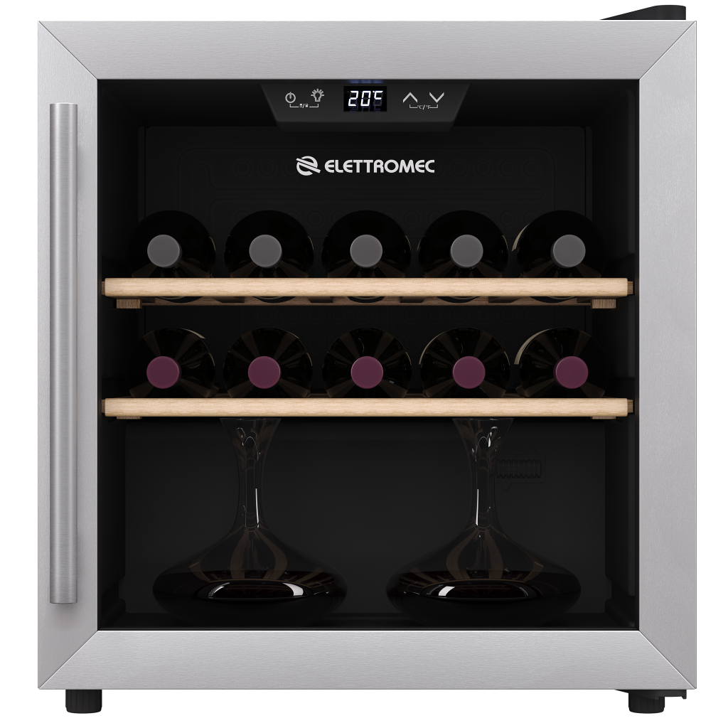 Ideal para os mais diversos ambientes, a Adega de 14 garrafas é uma solução perfeita para armazenar vinhos. Com acabamento em aço inox, possui dimensão compacta que facilita a sua instalação em quaisquer espaços da casa. Conheça mais sobre esse produto: