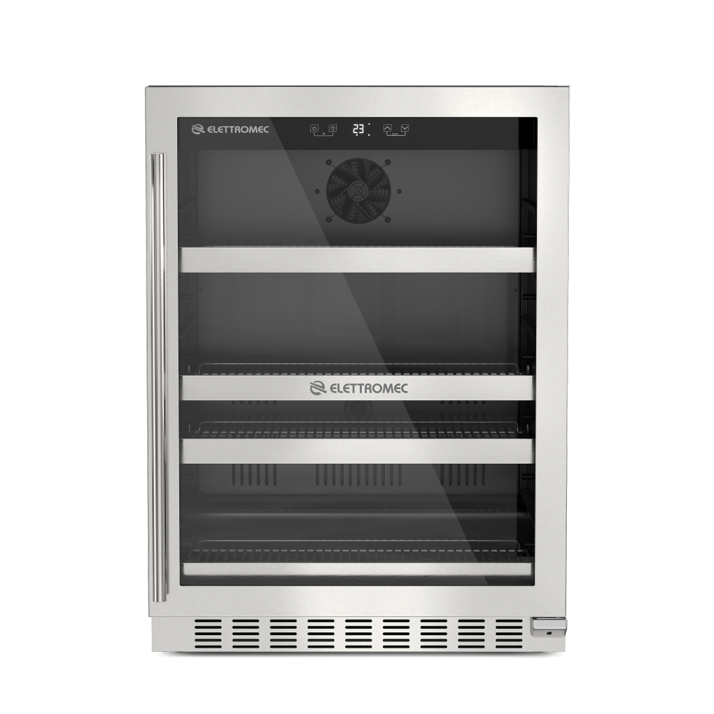 O Beer Center Inox 145 Litros Built-In Connect Elettromec combina capacidade e tecnologia para manter suas bebidas sempre frescas. Com prateleiras ajustáveis e temperatura de -5 a 5°C, permite organizar diferentes tipos de bebidas com praticidade. O vidro triplo com Low-e e Heating Glass duplo protege contra variações externas e condensação, enquanto o acabamento em aço inoxidável 304 com LED Strip lateral garante durabilidade, elegância e ótima visualização para qualquer ambiente.