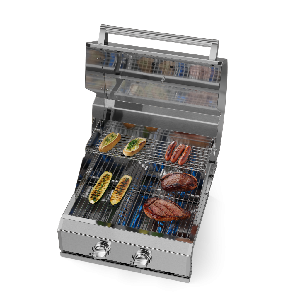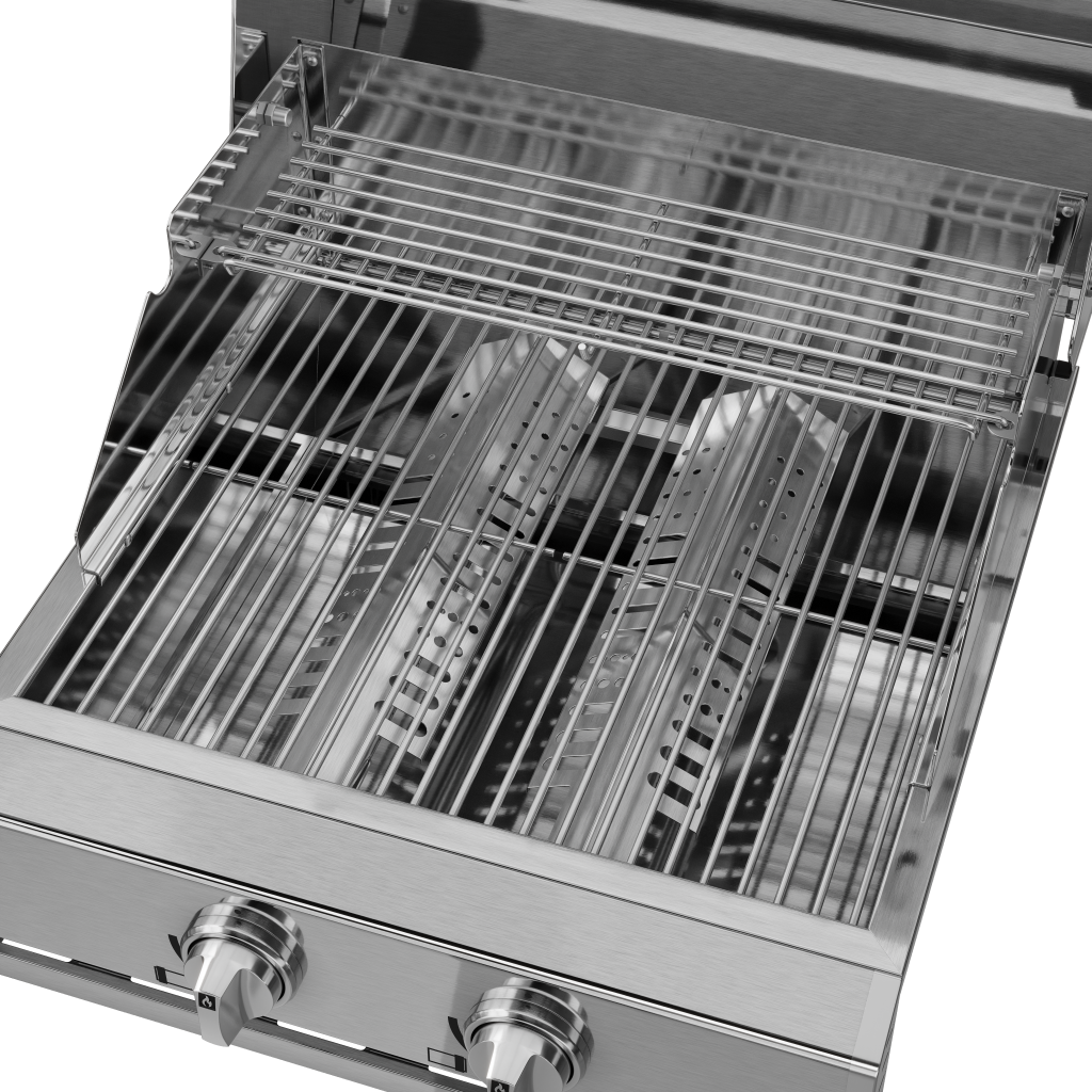 Produzida em aço inox, entrega durabilidade, fácil manutenção e estética sofisticada. Com 55 cm, foi projetada para embutir e se integrar harmoniosamente a varandas e cozinhas gourmet menores, otimizando o espaço sem comprometer estilo ou performance.