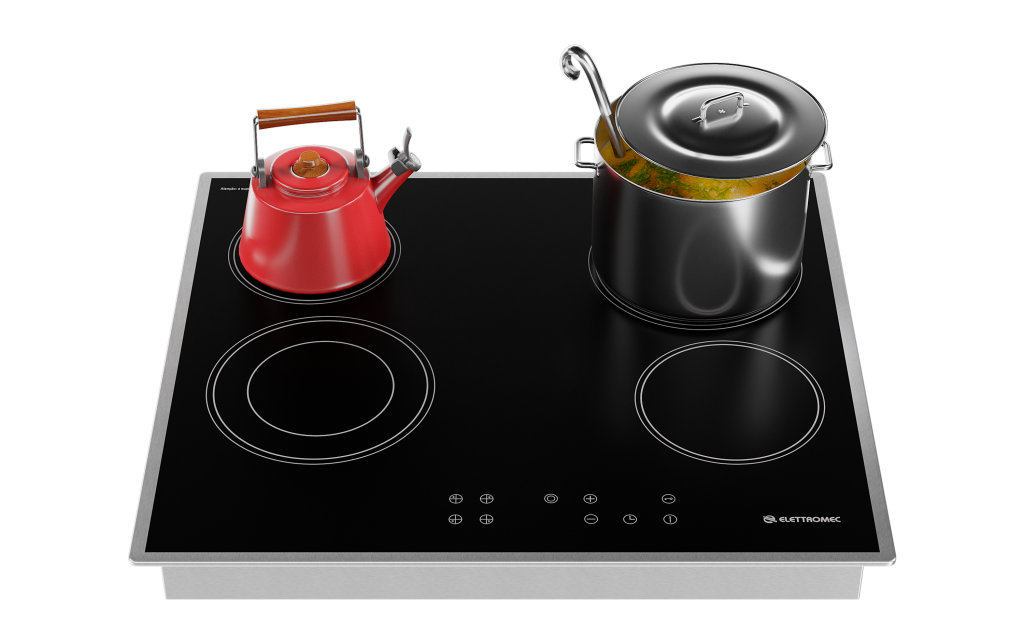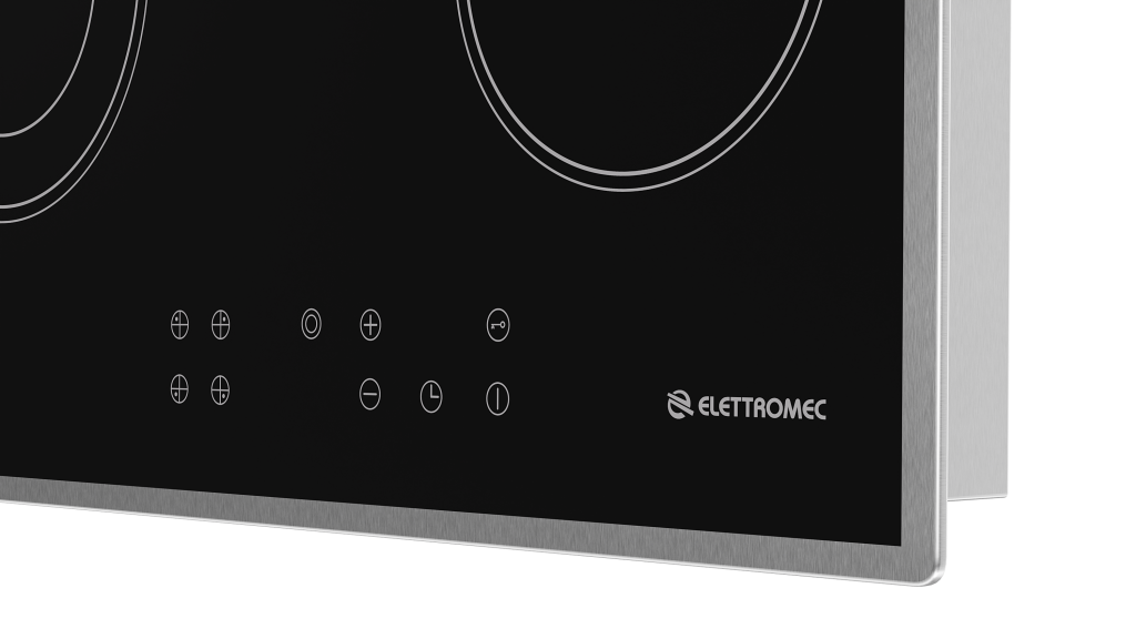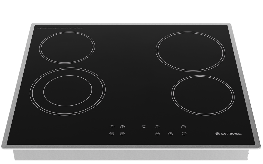 Conta com 4 zonas de cocção, indicadores de calor residual e trava de segurança que bloqueia as funções do painel de controle, para evitar acidentes.