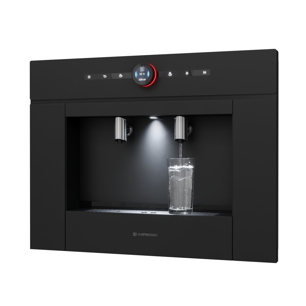 O Dispenser de Água Black Matte combina tecnologia, conveniência e design sofisticado para cozinhas contemporâneas. Integrado ao projeto, oferece água sempre disponível com praticidade e elegância no dia a dia.