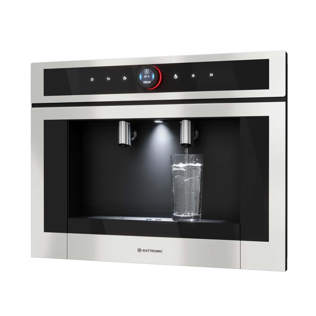 Com acabamento em aço inox, o dispenser de água apresenta visual elegante e atemporal. Desenvolvido para instalação built-in, compõe o Family Look Sole, combinando com forno, micro-ondas e gaveta aquecida para uma torre quente harmoniosa.