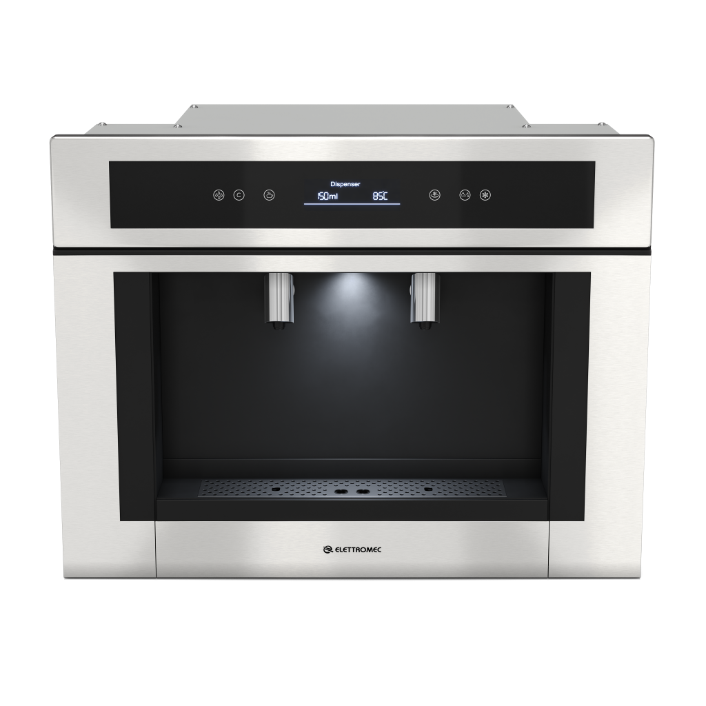 O Dispenser de Água Elettromec vem para integrar a família de produtos Sole e tornar possível uma composição exclusiva para cozinhas. Com instalação Built In, além do design elegante, o produto entrega água refrigerada e água aquecida de forma instantânea. Muito mais praticidade para os preparos, possui display touch para controle e pode conectado a rede hidráulica.