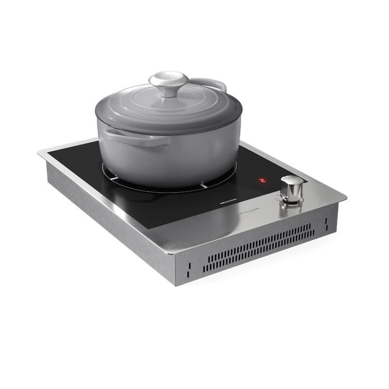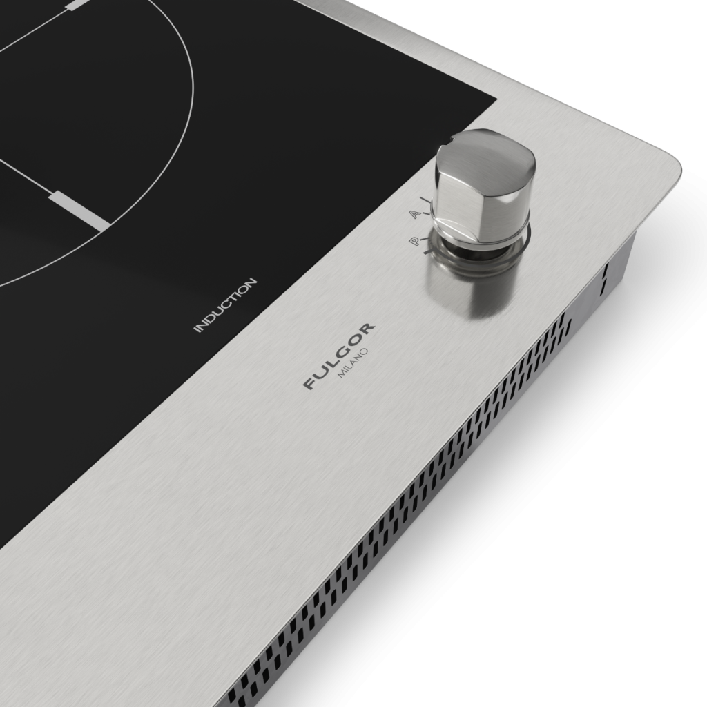 O Dominó de Indução Plano apresenta uma borda de 1 mm de espessura. Dessa forma, ele pode ser embutido ou semi-embutido na bancada da cozinha. Os manípulos de aço inoxidável facilitam a escolha das configurações de cozimento. O produto possui um sistema de segurança que inclui um bipe de _m de cozimento e indicador de calor residual (H). Além disso, também conta com um raspador de limpeza de superfície.