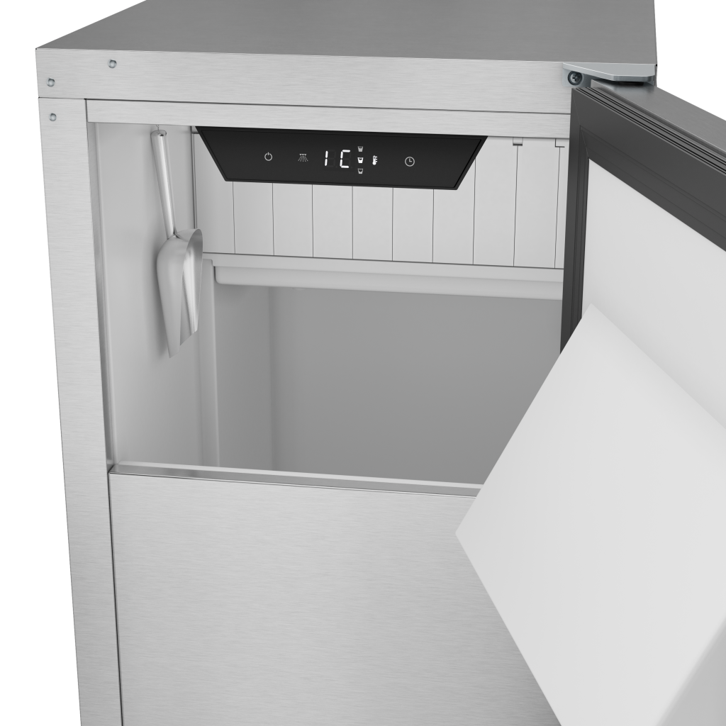 Com alta capacidade de produção de gelo, a nova Ice Maker traz funcionalidade para integrar cozinhas e áreas gourmets. Seu acabamento em inox e largura de 38 cm permite a combinação com outros produtos Elettromec para compor áreas gourmets sofisiticadas e funcionais.