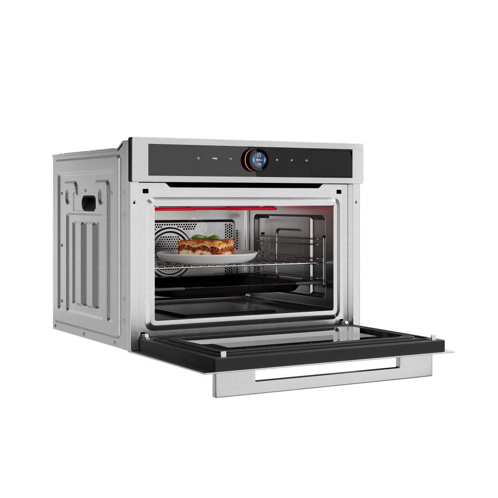 O painel digital com controle touch e manípulo com TFT oferece navegação clara e controle preciso das funções. O sistema flat, sem prato giratório, amplia o espaço útil da cavidade e permite o uso de recipientes maiores ou de diferentes formatos com aquecimento uniforme.
