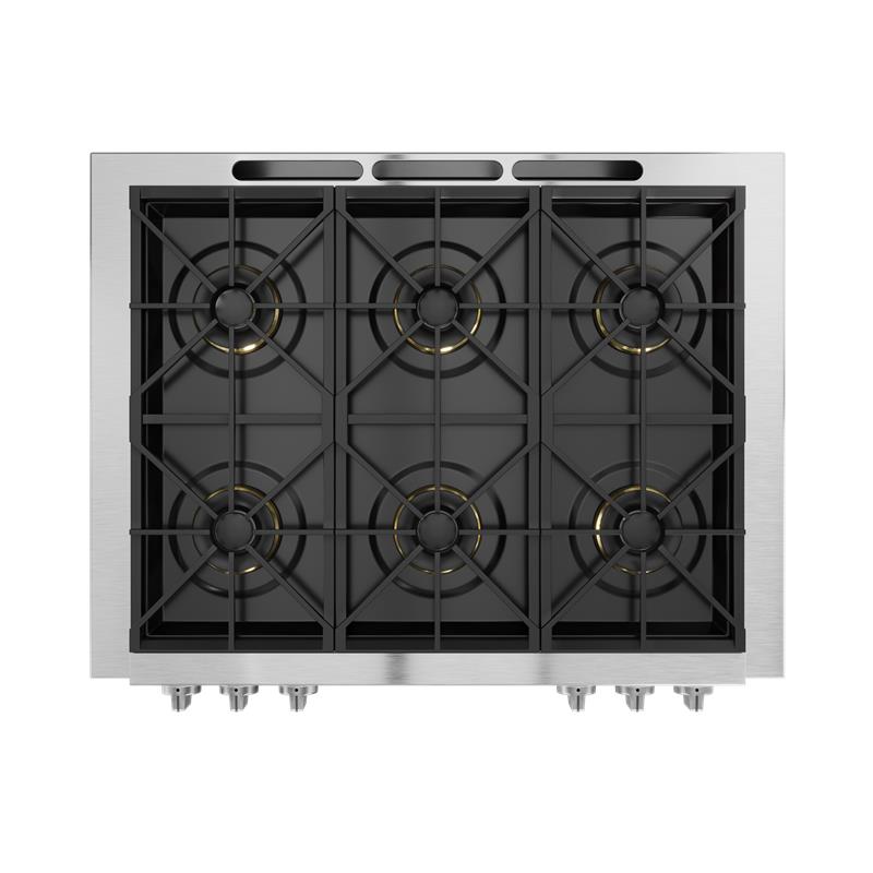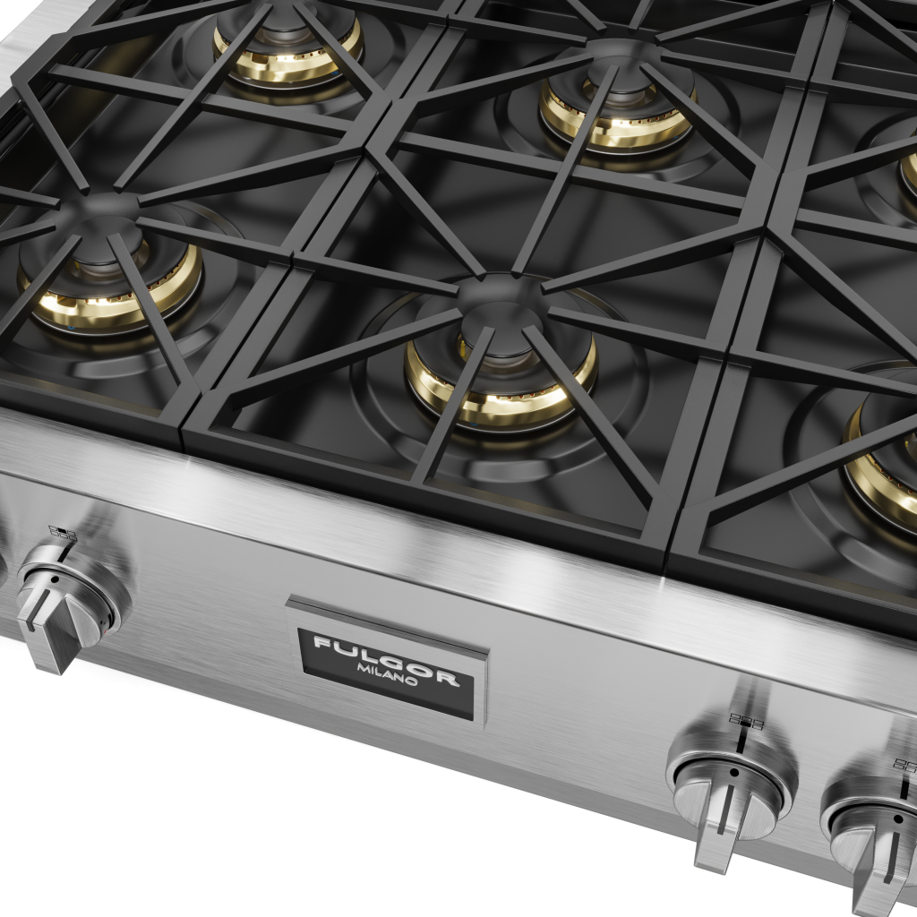 O Rangetop Sofia a Gás herdou o design icônico da série Sofia Professional. Para aqueles que desejam uma instalação embutida, este produto (combinado com o forno profissional embutido) apresenta uma combinação de materiais sólidos e tecnologias de ponta, garantindo soluções versáteis e funcionais. Os queimadores a gás Crescendo Dual de alta qualidade, ajustáveis de 375 a 4500 W (Gás natural), oferecem infinitas possibilidades de ajuste em todas as seis zonas de cozimento. O Rangetop é ainda equipado com válvulas de segurança antivazamento.